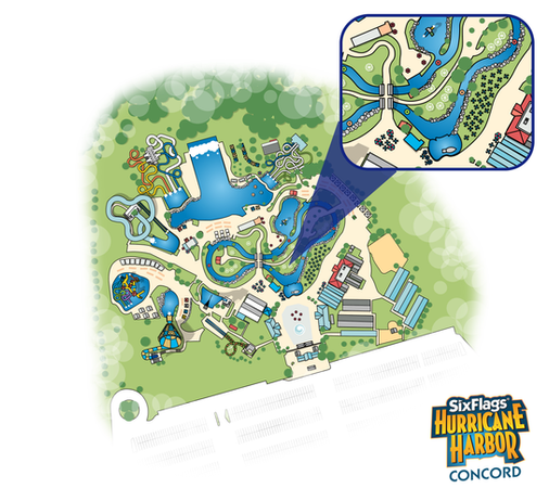 This freelance project was for Six Flags in the United States, where I was commissioned to create five illustrated waterpark maps.